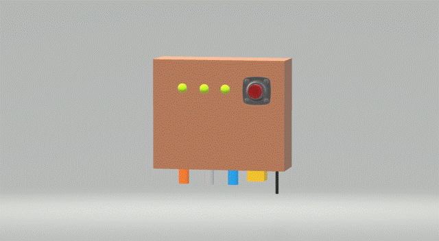 Here is a quick 3D sketch of what the final product will most likely be similar to. The electronics will be encapsulated in a small box, which has three LEDs on the front, right beside a button. Upon pushing the button, the device will activate the sensors and take the necessary readings. The five sensors are situated on the bottom of the device.
