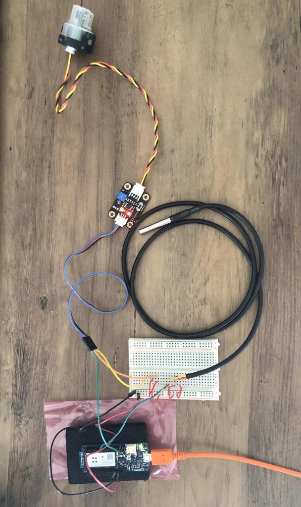 Today I tested the temperature and turbidity sensors simultaneously, here is how I set them up: