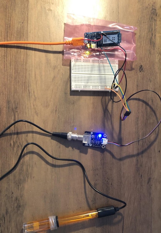 This time we can use DFRobot’s script to “calibrate” the ORP sensor since there are no libraries used that are exclusive to AVR boards. You can find the sample code and calibration instructions here. To calibrate the probe, leave it in the neutral solution and connect it to the Arduino. Run the script, then hold down the calibration button on the Grove connector board (comes with the sensor). The value on the serial monitor should be very small, remember it. Head back to the code and change the OFFSET value from 0 to whatever value you just saw on the serial monitor. Your probe should now be calibrated to the neutral solution.
